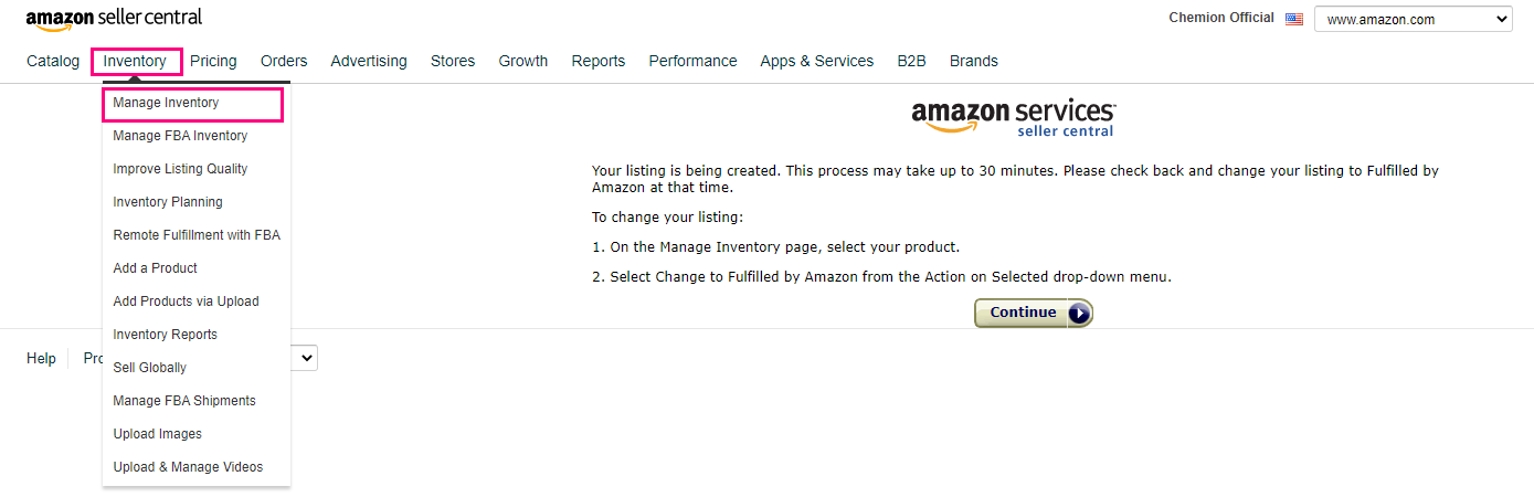 상품등록이 제대로 됐는지 확인하려면 Inventory > Manage Inventory 로 가볼까요.