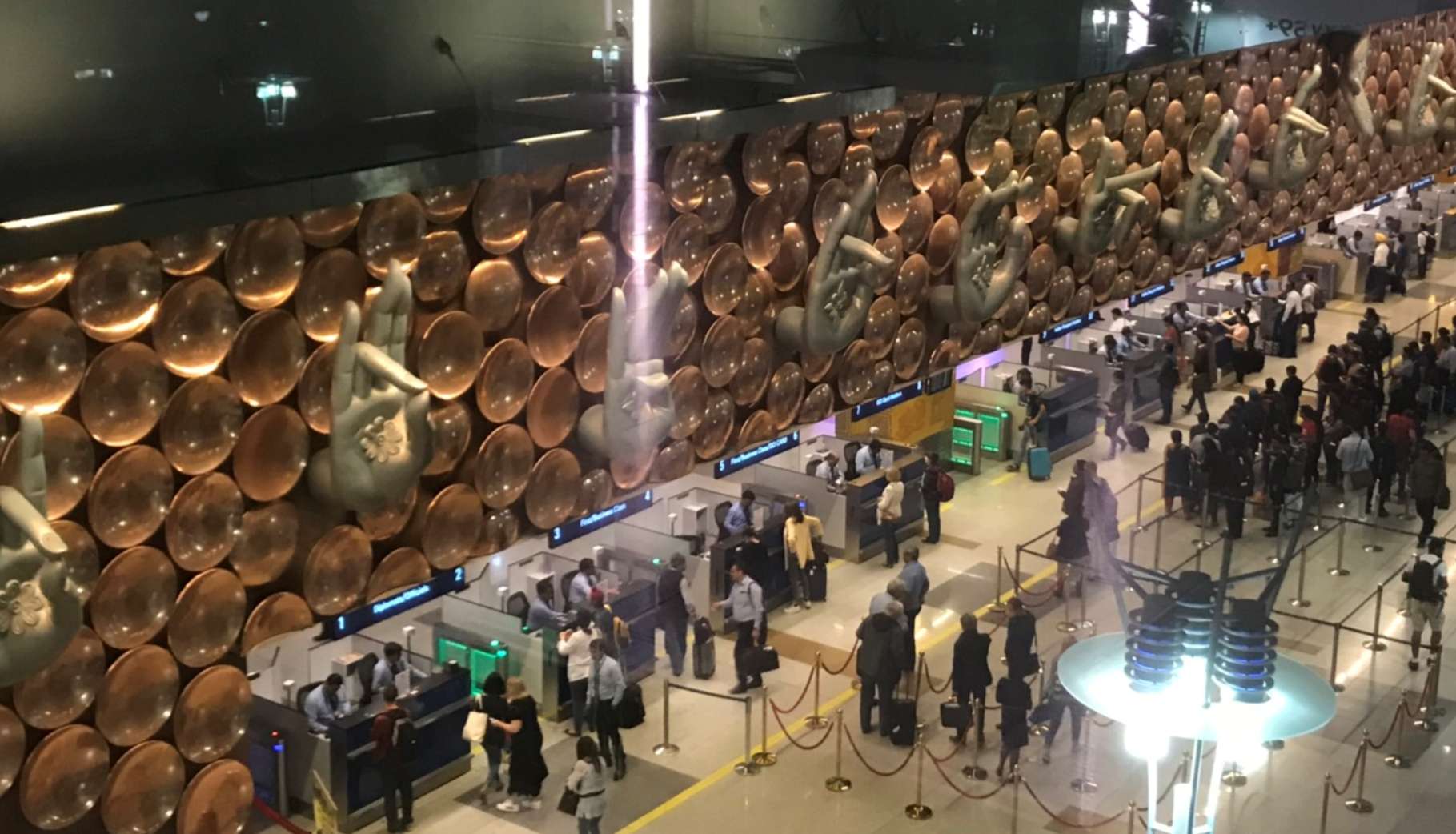 인도공항에 도착했음을 보여주는 시그니처 손 모양