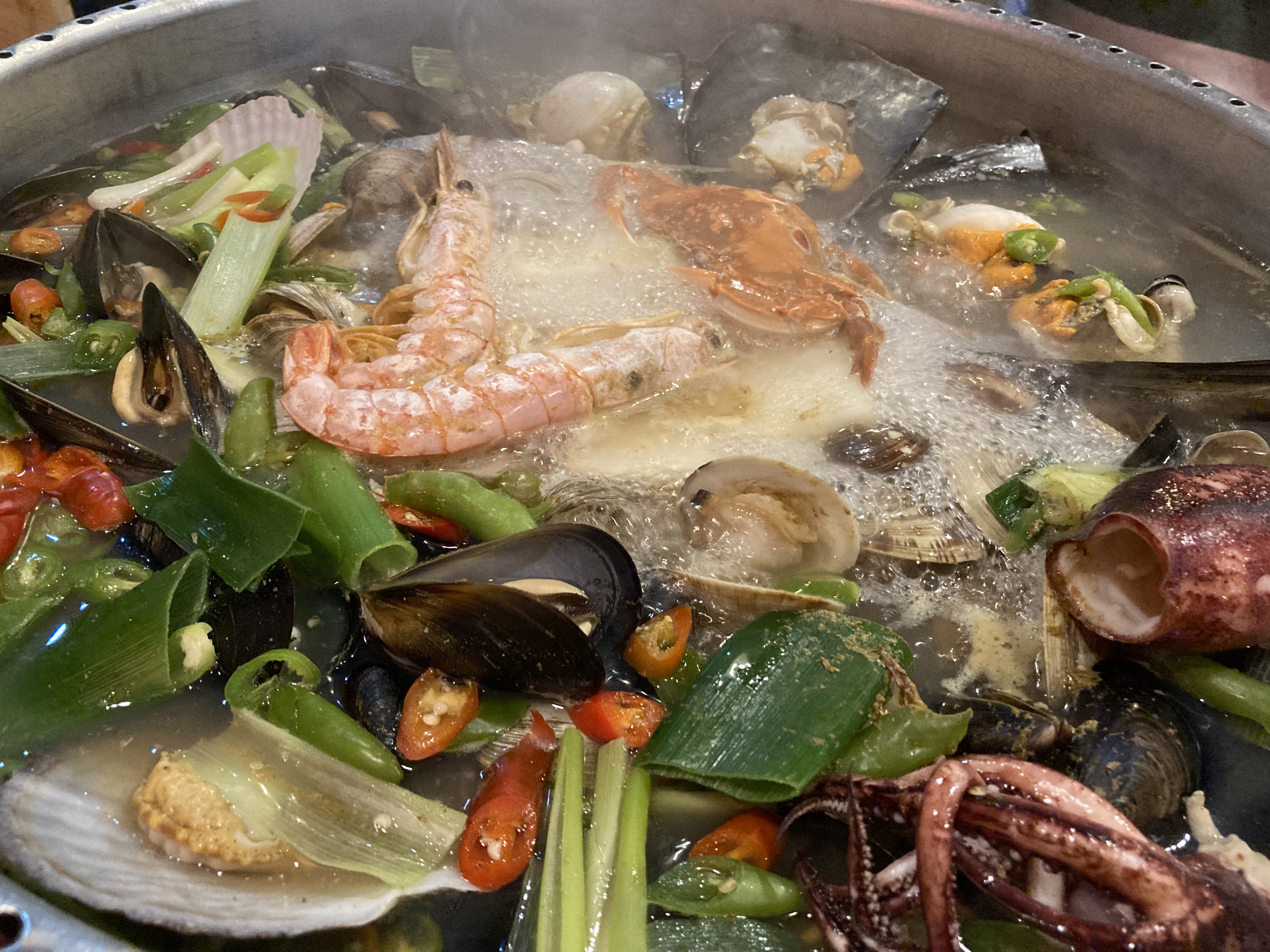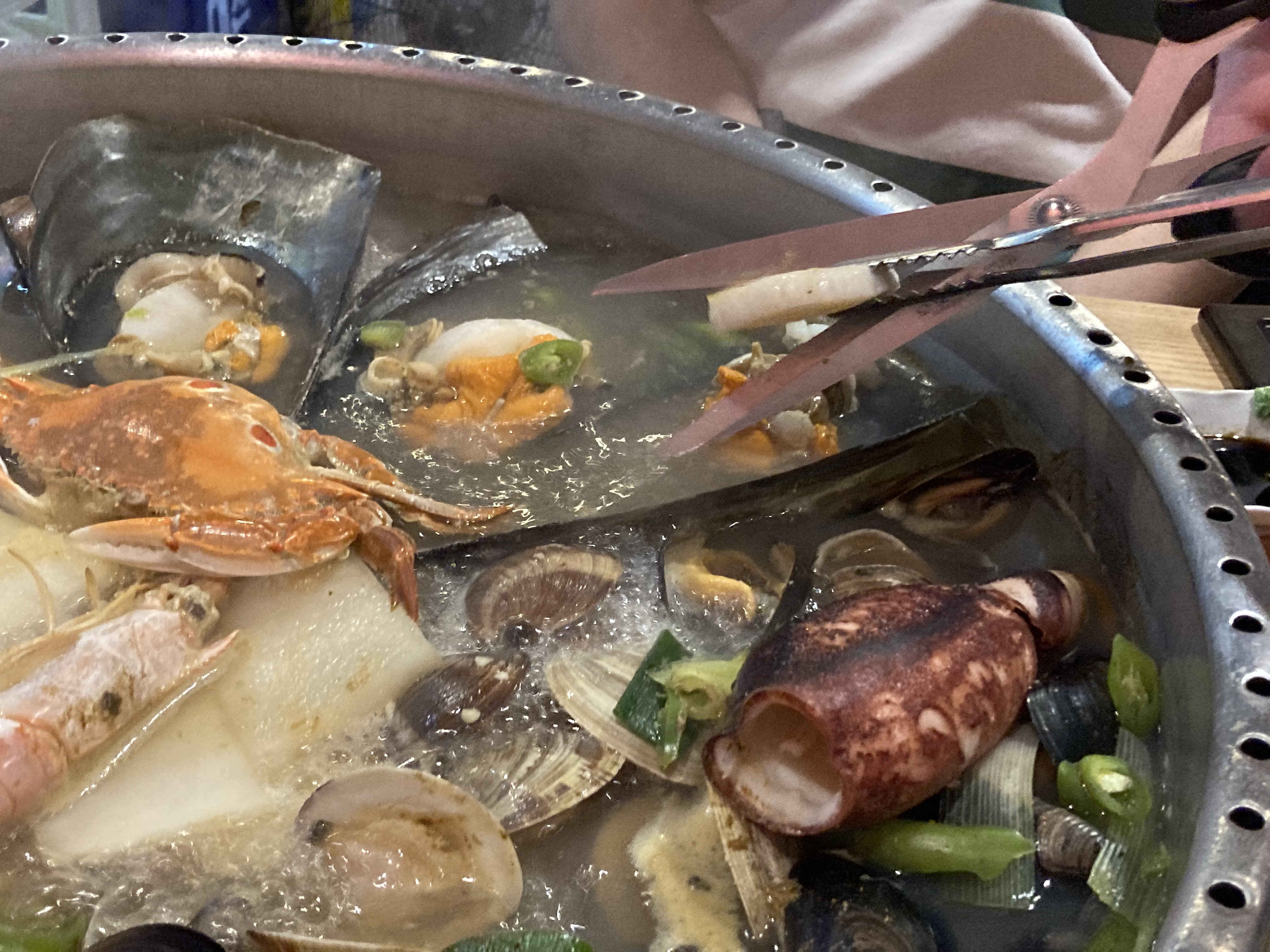맛있게 쪄지고 있는 조개전골!!! 실제로 보면 엄청 커요.