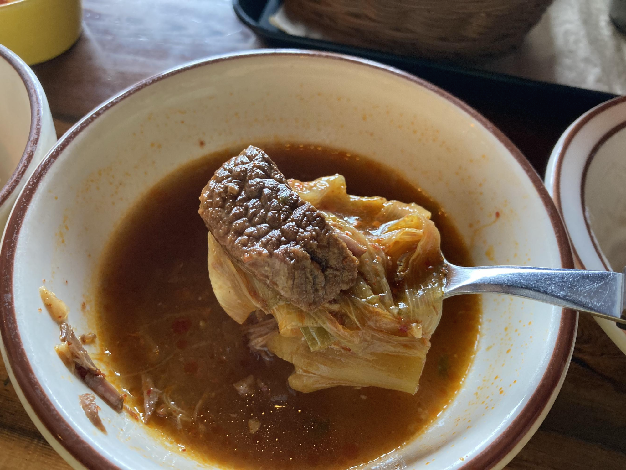 저런 고기가 3~4개 들어있었어요! 약간 느끼할 수 있는 속을 달래주는데는 한식만한게 없죠ㅎㅎ