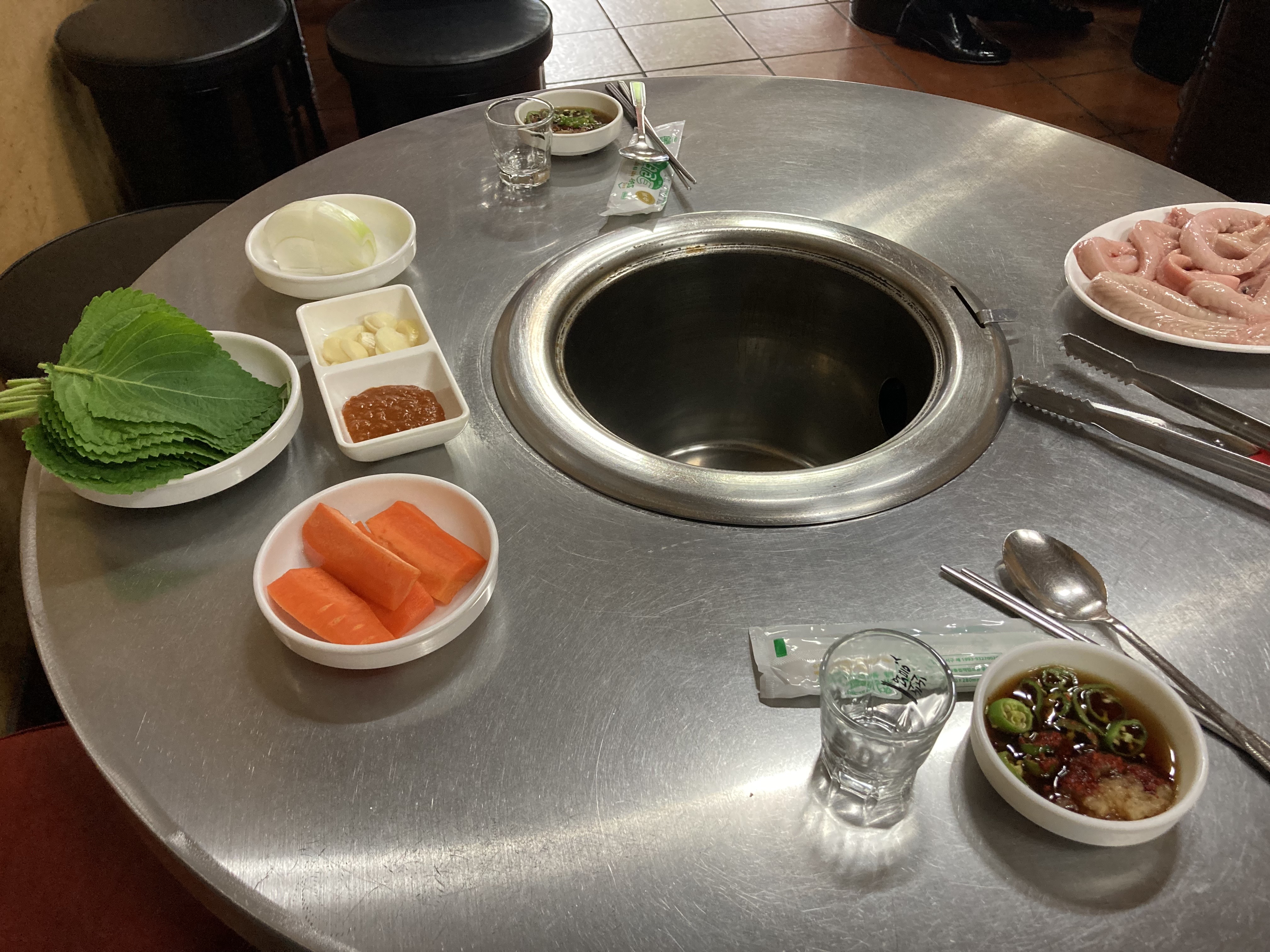 세팅은 이렇게 간단하게 나오고 꼼장어 & 고기를 찍을 수 있는 장이 나와요.