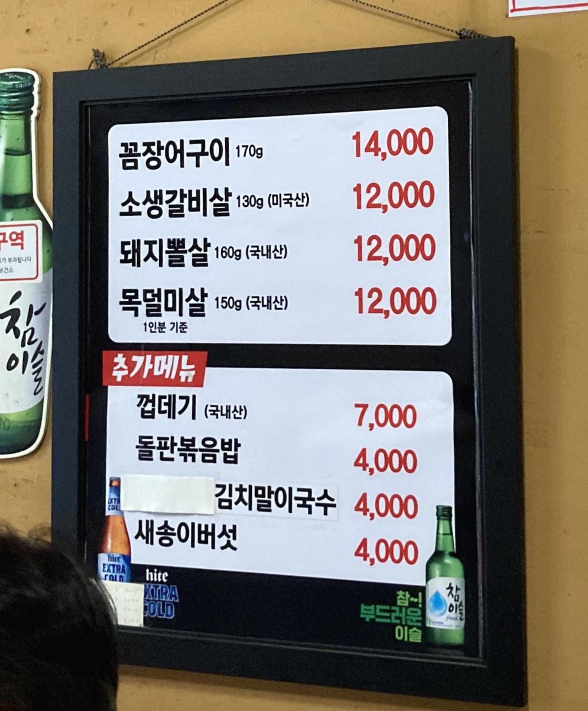 메뉴판 앞에 사람들이 있어서 이렇게 밖에 찍지 못했어요ㅠㅠ
