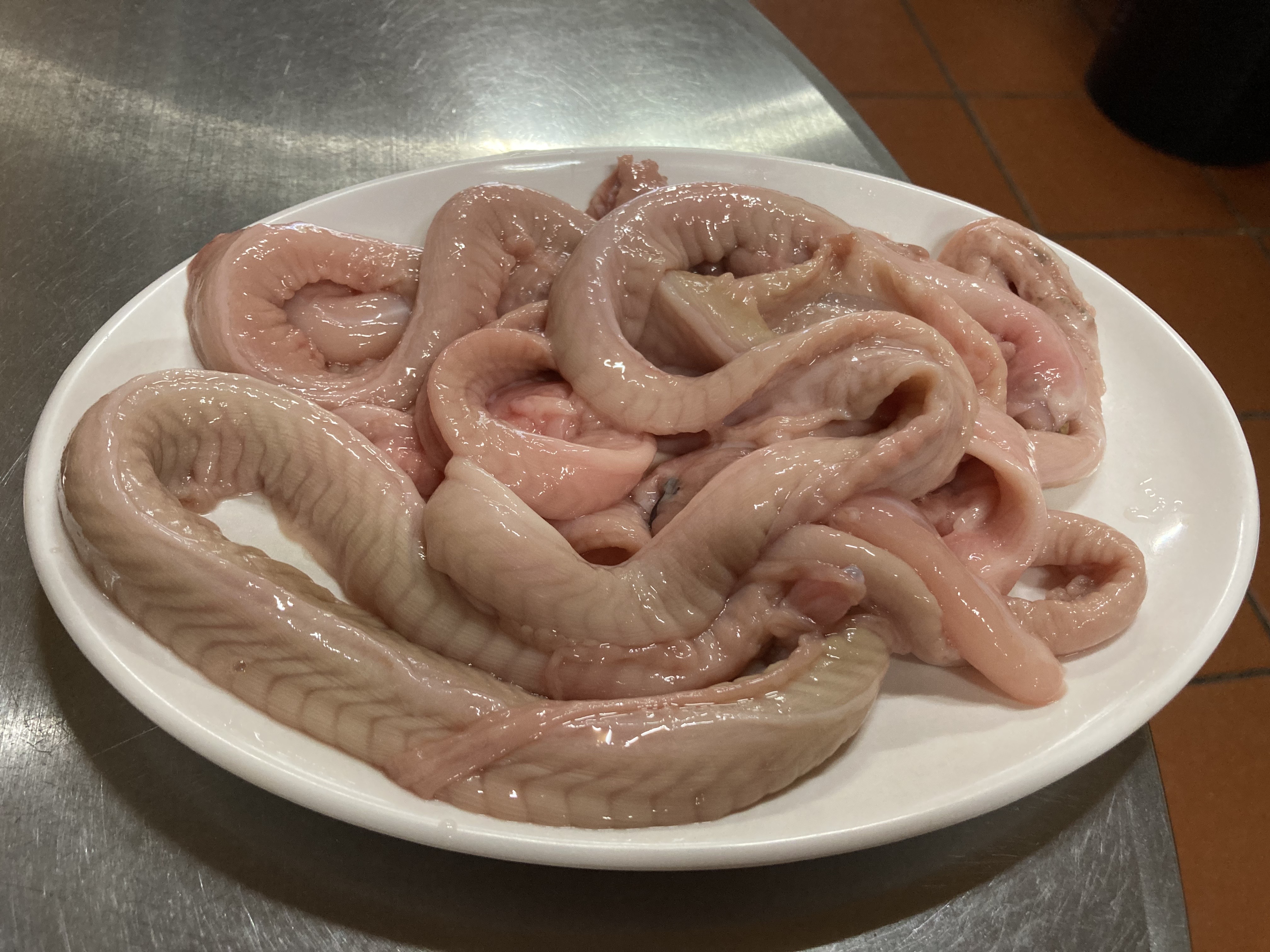 왼쪽부터 꼼장어 2인분, 돼지뽈살 1인분, 껍데기 1인분이예요.