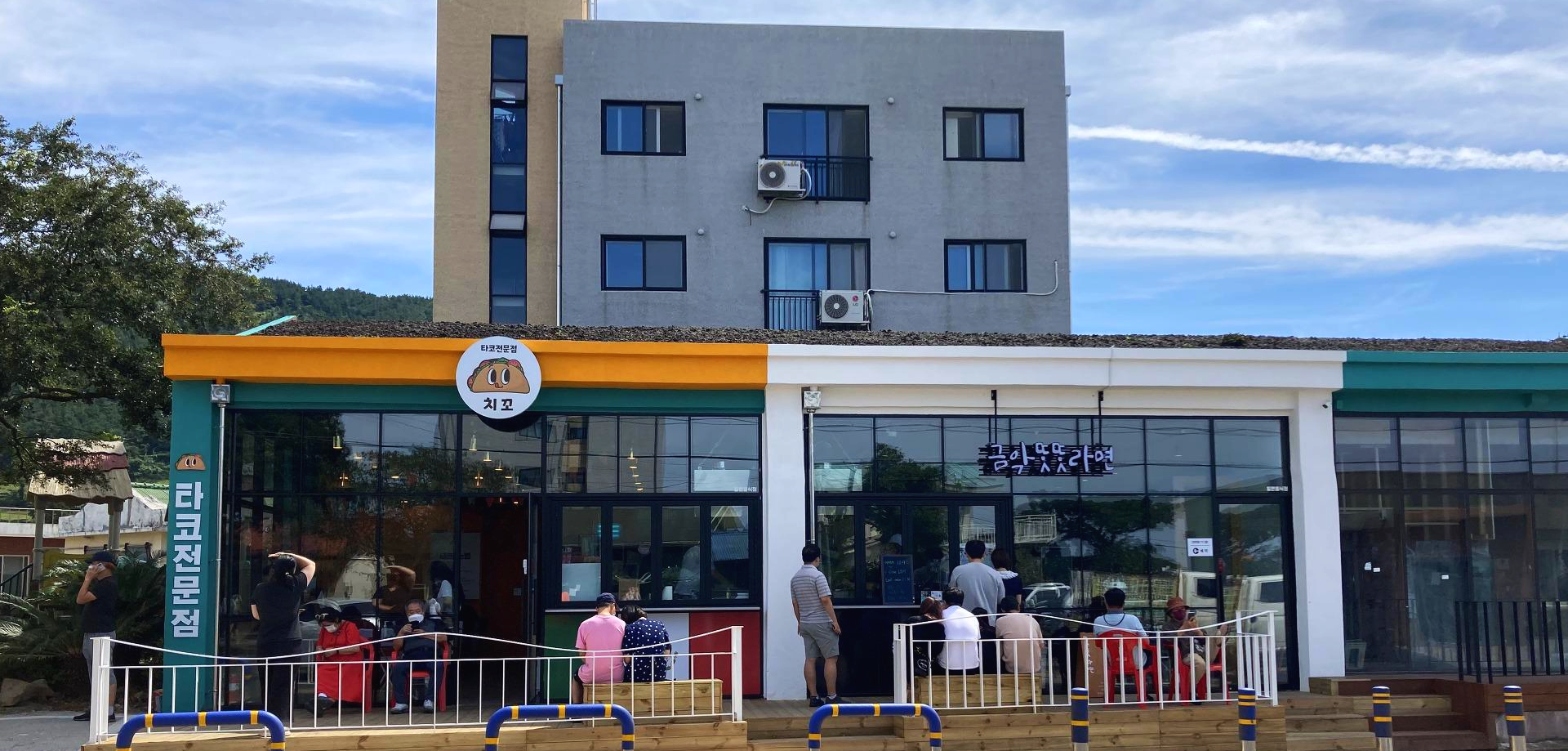 도착하면 먼저 타코전문점 '치꼬'와 흑돼지라면 전문점 '금악똣똣라면'이 보여요.