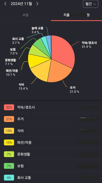 그래서 가계부를 쓸 때 "내가 돈을 어디에 썼는지 무조건 기록한다." 처음엔 귀찮았는데, 이렇게 하다 보니 내 소비 패턴을 정확히 파악할 수 있었다. 예를 들어, 한 달 동안 커피에만 10만 원을 썼다거나, 택시비로 5만 원 넘게 썼다는 걸 알게 됐을 때, 이걸 줄여야겠다는 결심이 자연스럽게 들었다. (하지만 물론, 100% 작성하지는 못하고 99%를 작성하는 걸 목표로 하고 있다.)