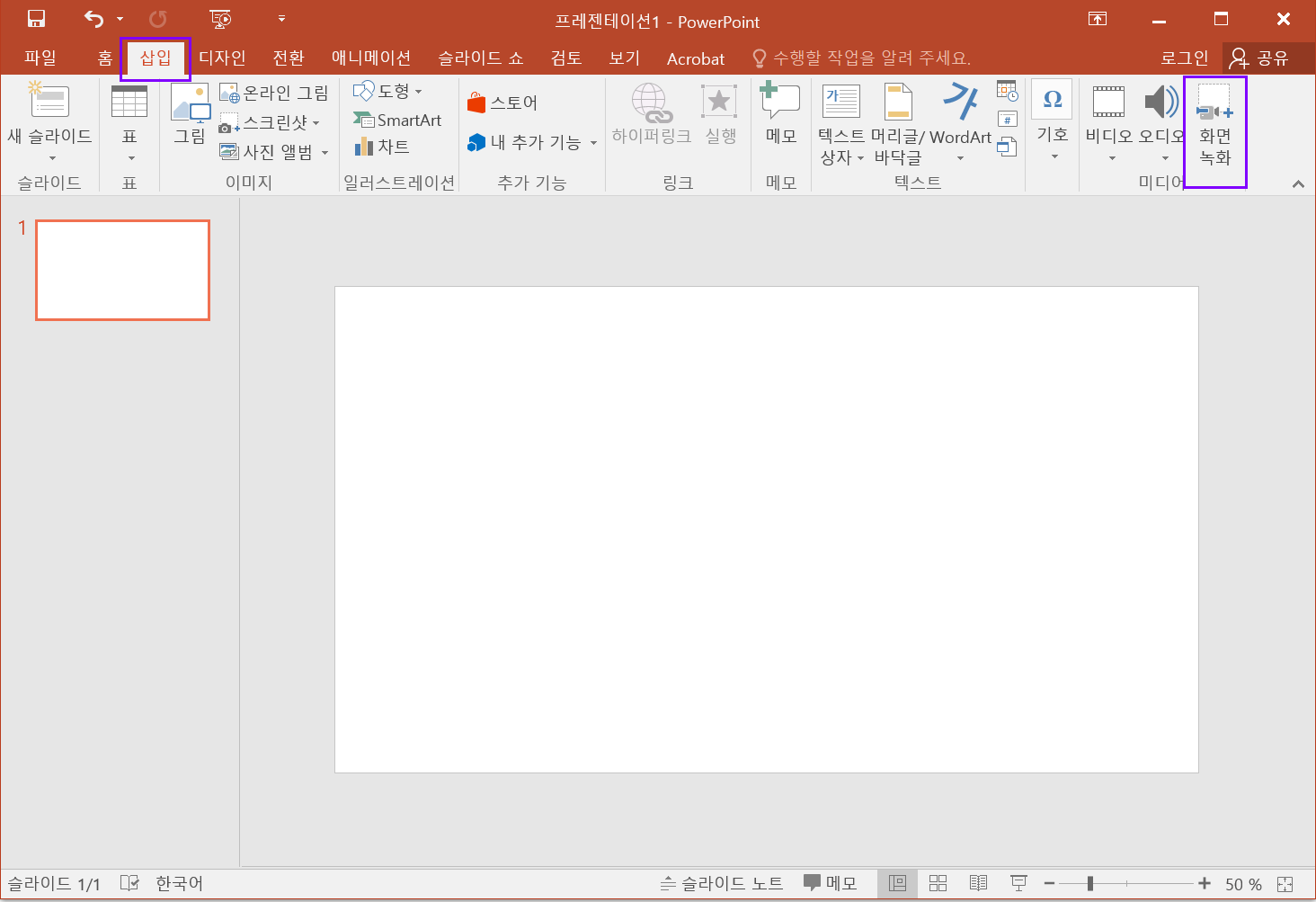 PPT에는 '화면녹화' 라는 기능이 있습니다. 말 그대로, 작성자가 보는 화면을 그대로 녹화하는 기능입니다. 저희는 이 방법을 이용하여 동영상을 삽입하겠습니다.