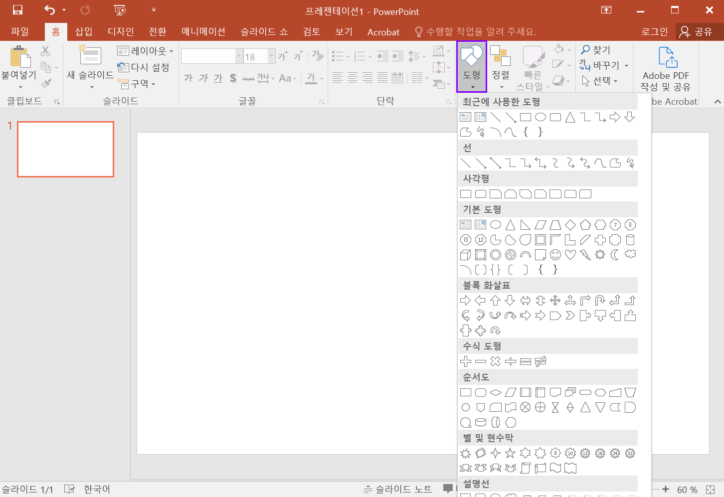 원하는 사진의 크기, 모양에 맞게 도형을 선택합니다.